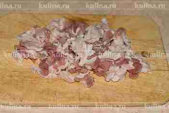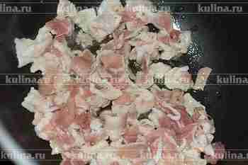 Бекон нарезать кубиками.