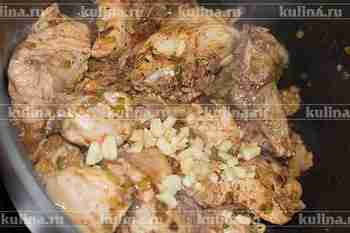 Чеснок мелко нарезать и положить к остальным ингредиентам.