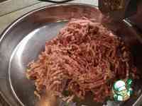 Пропускаем через самую мелкую решетку мясорубки (у меня 2 мм). Говядину дважды, свинину один раз.