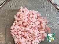 Но перед этим нужно позаботиться о шпике. 100 граммов хребтового шпика нужно нарезать мелким кубиком 0,3 х 0,3 см. Легче будет это