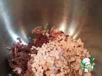 Смешиваем все части нашего фарша. Я это делаю в планетарном миксере. Можно это делать миксером с насадками для теста. Опять же, чтобы не