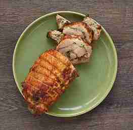 Готовое мясо переложите на блюдо и оставьте на 15 мин., затем разрежьте кухонный шпагат и удалите его. Нарежьте поркетту тонкими ломтиками и подавайте к столу.