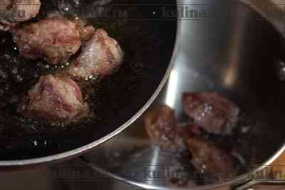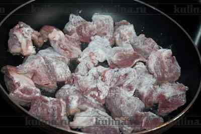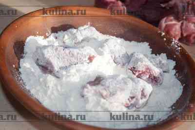 Обвалять каждый кусок мяса в муке (Не солить и не перчить!).