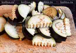 Баклажаны нарезать ломтиками одинакового размера.