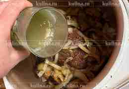 Влить бульон.