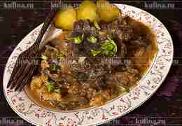 Готовка говяжьих щечек в мультиварке делает их самыми нежными, мясо просто тает во рту. Тушеные почти до состояния соуса баклажаны с луком служат отличным дополнением к мясу.