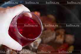 Влить вино. Закрыть крышкой и тушить 20-25 минут.