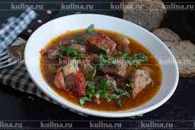 Разложить мясо по тарелкам, посыпать измельченной свежей зеленью и подать к столу.