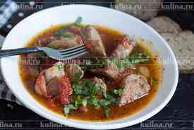 Если у вас есть мясо, не важно какое и овощи, да еще немного вина, приготовьте очень вкусное блюдо греческой кухни - штуфат. Штуфат - нежнейшее тушеное в вине мясо с томатами и репчатым луком. Как все блюда греческой кухни, мясо приправлено специями и имеет неповторимый вкус и аромат. Заранее отварите рассыпчатый рис или приготовьте картофельное пюре и наслаждайтесь очень вкусным блюдом, которое очень просто и быстро приготовить в домашних условиях.
