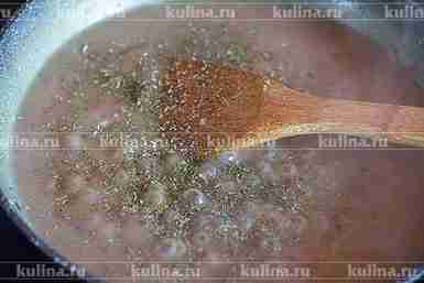 Посыпать солью с чесноком и пряными травами, а также смесью "Французские травы", перемешать.