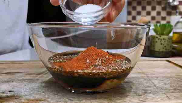 масло, целые зернышки кориандра, зиру, сухие ароматные травы и сладкую паприку.