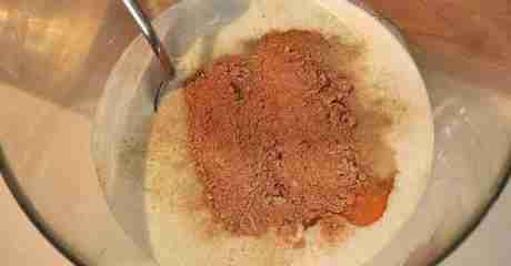 Готовим соус. В миске смешиваем жирную сметану, сливки и яйца. Посолим. Добавим белый перец, сухой