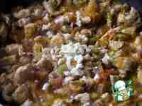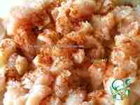 Филе индейки мелко нарежьте, присолите, добавьте паприку, перемешайте и оставьте на 20-30 минут.