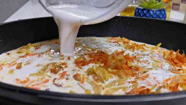 Заливаем этим белым соусом овощи и доводим до кипения.