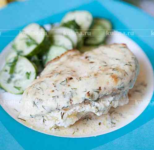Готовые куриные грудки, фаршированные ананасами разложить по тарелкам и подать к столу.Источник: Kulina.ru