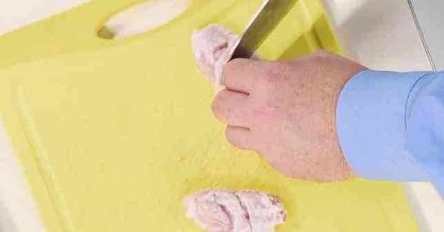Каждый кусочек надрезаем по коже с двух сторон, чтобы маринад лучше пропитал курицу.