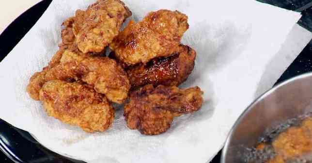 Готовые крылья выкладываем на бумажное полотенце, чтобы дать лишнему жиру стечь.