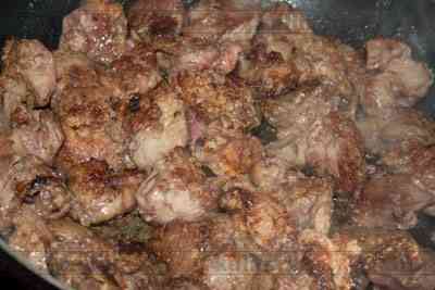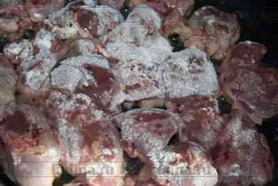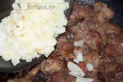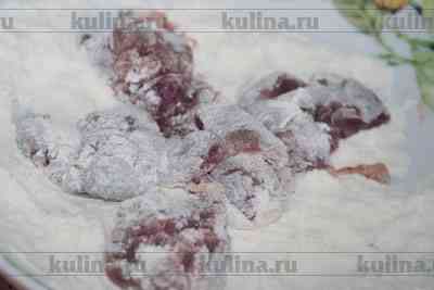 Разогреть растительное масло и обжарить кусочки печени со всех сторон.