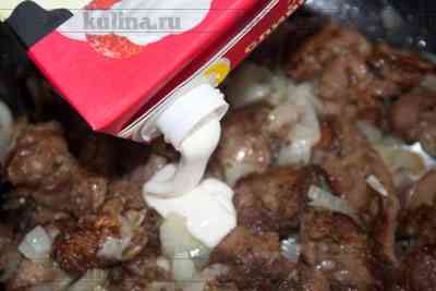Влить сливки, перемешать, закрыть крышкой и потомить еще 10 минут.