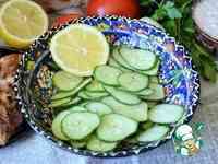 Огурцы нарезать, сбрызнуть лимонным соком, посолить.
