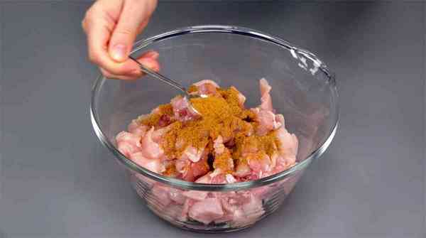 1,5 кг куриного филе и филе бедра (можно взять любые части курицы!) нарезаю на кусочки. Добавляю 40 мл растительного масла и 2 ч.л.
