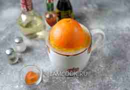 Один апельсин разрежьте пополам, выдавите сок.