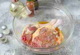 Хорошенько обваляйте их в маринаде, оставьте ножки в нем хотя бы на час.