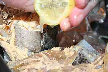 Если у вас замороженная рыба, то ей необходимо дать оттаять при комнатной температуре.