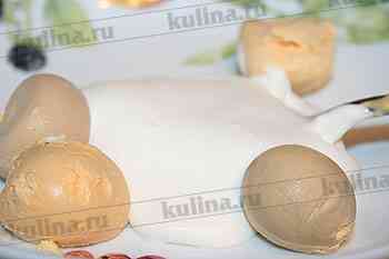 Данной смесью обмазать каждый кусок рыбы и выложить в огнеупорную форму.