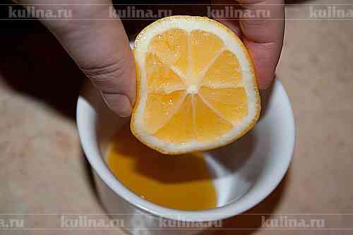 В миску положить мед. Добавить сок лимона.