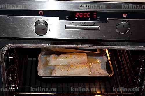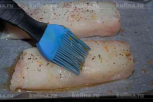 Филе рыбы положить на противень, полить маринадом.