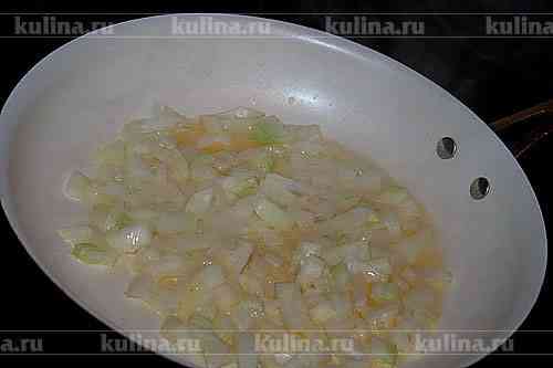 В это время нарезать репчатый лук и обжарить его на сковороде.