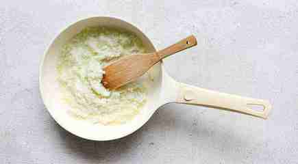 Очистите лук и чеснок, натрите лук на средней терке, а чеснок на мелкой. Разогрейте сливочное масло в небольшой