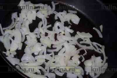 Репчатый лук мелко нарезать и выложить в сковороду с разогретым маслом, обжарить до мягкости.