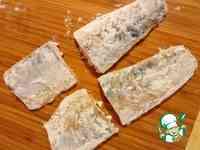 Каждую половинку филе разрезать на две части. Обвалять в муке.