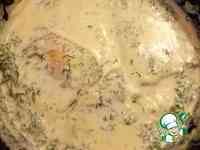 Укроп мелко нарезать. Взять другую небольшую сковороду, налить сливки, проварить с укропом 5 минут, пока сливки слегка не загустеют, добавить