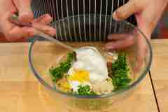 В миске смешайте майонез с горчицей, цедрой лимона, песто и рубленой петрушкой.