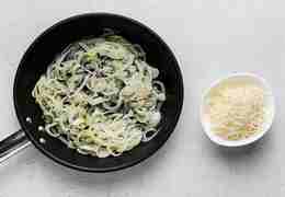 Лук нарежьте полукольцами. Сыр натрите. В сковороде растопите масло. Добавьте лук. Часто помешивая, жарьте на среднем огне. Лук должен приобрести красивый золотистый цвет.