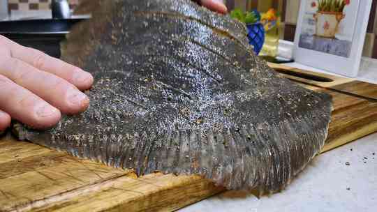 Берем камбалу любого вида. Чистим, моем, отрезаем хвост. Что касается плавников, то я их никогда не срезаю.