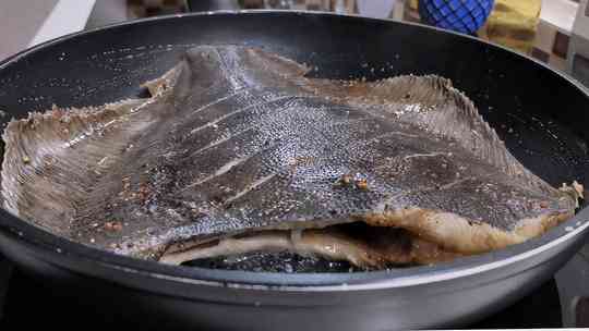 Выкладываем камбалу на разогретую сковороду с растительным маслом и жарим 5 минут на огне выше среднего без крышки.