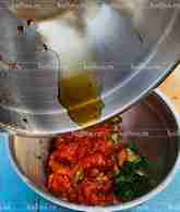 Полить овощи оливковым маслом. Поперчить и посолить. Все аккуратно перемешать.