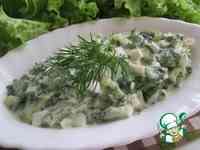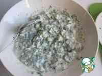 Простоквашу смешать с маслом, потом добавить яйца, чеснок и зелень. Уксус берите по желанию, яблочный или винный, и его