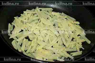 Картофель очистить, нарезать соломкой. В сковороде разогреть масло,