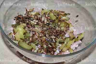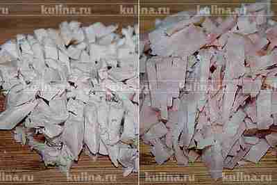 Курицу и ветчину нарезать соломкой.