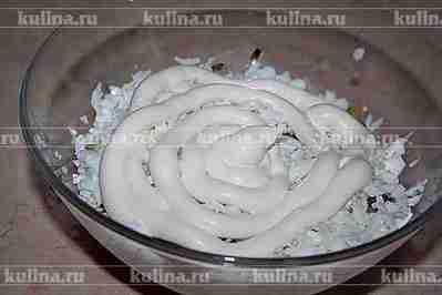 Заправить салат майонезом.