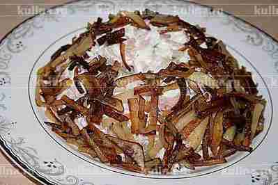 Сформировать из салата гнездо.
