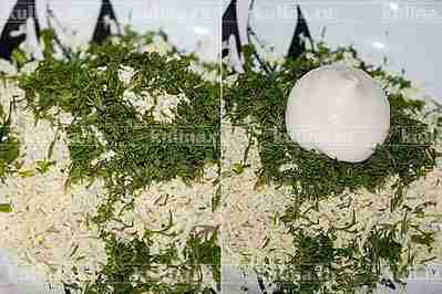 Сформировать "яйца" и выложить в гнездо. Подать к столу.