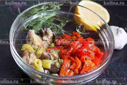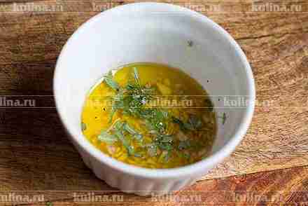 Снять листики тимьяна с веточки, нарезать, положить в емкость, перемешать.