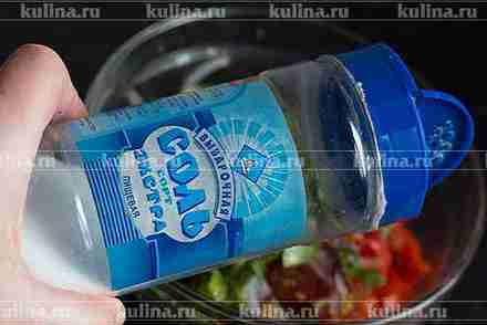 Репчатый лук, зелень нарезать соломкой, положить в миску.