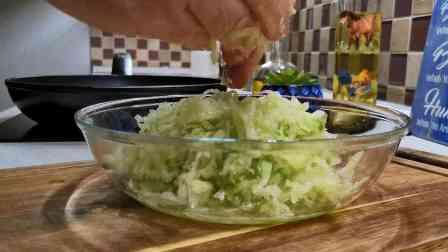 Трём зелёную редьку на крупной терке, присаливаем и оставляем на 10 минут. После этого хорошо отжимаем от горького сока.
